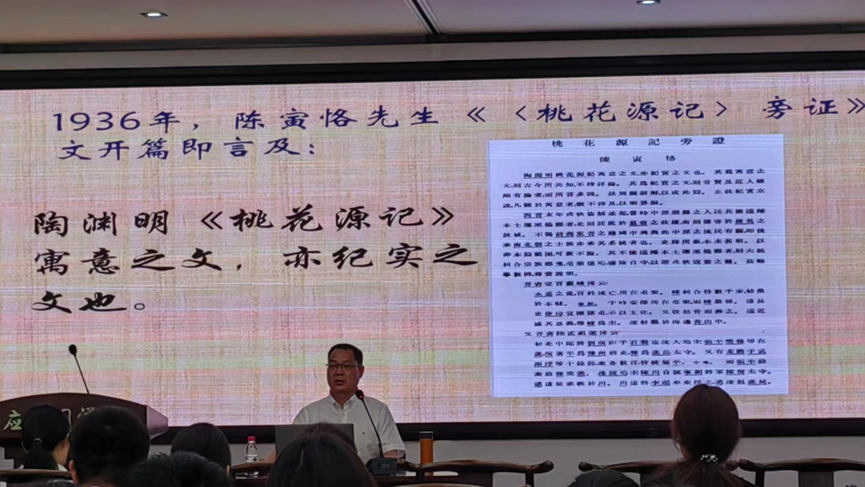 周书灿教授立足于史料与史实,向大家介绍了唐长孺先生对陈寅恪先生《〈桃花源记〉旁证》一文运用“文史互证”得出信息的质疑与论争,以此引发听者对“文史互证”中寓意与纪实问题的思考,进而介绍了《穆天子传》的基本情况,并引入对《穆天子传》研究范式转型的讲解。周教授强调,忽略《穆天子传》的小说、神话体裁性质,混淆文学作品中寓意与纪实的区分,滥用文史互证法,不仅不能做到文史结合,而且会给古史研究造成一系列混乱。