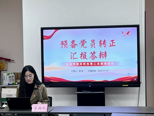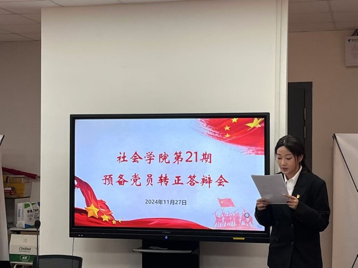 大会伊始,六位预备党员对一年内的思想、学习、实践等情况进行汇报。杨露同志从自身学习和实践情况进行汇报,分享个人学习科研、社会实践以及志愿活动表现情况,表明今后将加强党的最新理论成果学习,将党的理论与实践工作紧密结合,在具体问题中继续发挥党员的先锋模范作用。袁晴同志分享了自身在学院党课学习中的心得,在对党的性质宗旨学习后,更加坚定了共产主义理想信念,今后将继续深入学习党的理论知识,提高创新意识,加强实践能力。林振哲同志从个人发展、学习工作与党支部实践三个方面进行汇报,分享自身深入学习习近平总书记重要讲话精神的感悟,表示今后会保持谦逊谨慎的态度,向优秀党员同志学习,通过实践不断提升自身能力,努力成为一名合格的共产党员。贺明宇同志总结自身学习感悟,认为目前对理论实质内涵的学习有所欠缺,需要不断加强实践中解决问题的能力。李瑶月同志分享了参加党的理论学习与党支部各类活动的经历,强调在实践中增强党性修养与党性锻炼的重要性,表明未来要自觉加强党性修养,主动提升实践能力与创新思维。杨珮琪同志结合自身实践经历,分享在预备期内的思想学习、工作实践感悟,表明今后会加强社会服务行动,继续深入学习党的理论。