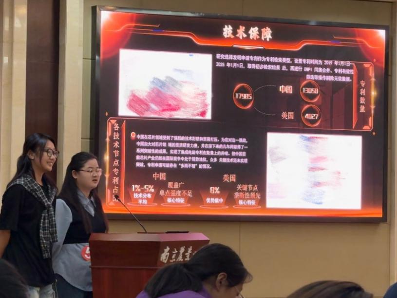 该比赛由江苏省人文与社会计算中心、江苏省科学技术情报学会联合主办,由南京大学、南京农业大学、南京信息工程大学共同发起。参赛成员由来自南京大学、南京农业大学、南京理工大学、必威西汉姆联、南京信息工程大学、南京中医药大学、扬州大学等7所高校的125支队伍、375名学生构成,经过初赛和决赛笔试环节,我院2023级信息资源管理专业本科生3支队伍进入决赛现场。本次决赛主题是“美国加关税背景下我国产业竞争情报分析与应对策略”,我院学生分别面向集成电路、生物医药与高端医疗器械、新能源汽车这三项战略性新兴产业开展竞争情报分析并进行答辩,最终取得优异成绩。