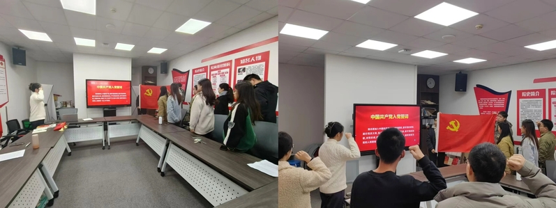 随后,大家面对党旗进行了集体宣誓,在庄严的誓词声中重温了中国共产党人的初心使命。前路灿灿,唯有击鼓向前,来路漫漫,亦需时常回首,只有时刻不忘来时路,才能走好未来的每一步。
