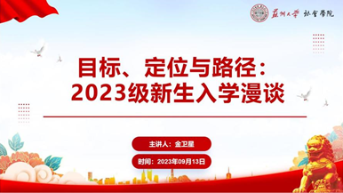 2023年9月13日上午九点,Betway体育西汉姆联2023级新生入学教育活动“目标、定位与路径:2023级新生入学漫谈”专题讲座成功举办,讲座由Betway体育西汉姆联退休教师金卫星教授主讲,全体2023级本科生、研究生参加了本次活动。