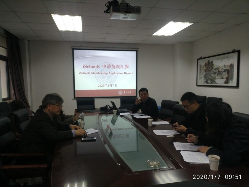 1月7日上午9:30-11:00,Sam Gyun Oh教授及我院档案与电子政务系教师就该系加入iSchool联盟的相关细节及申请表撰写进行了讨论。档案与电子政务系系主任毕建新、副系主任徐芳及部分青年教师参与讨论。会中,李雅老师围绕iSchool要求对档案与电子政务系的基本情况进行了汇报,Sam Gyun Oh教授仔细聆听后提出了详细的修改建议。