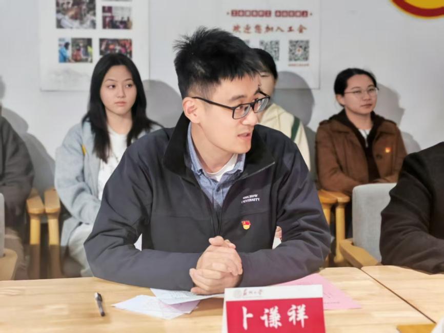 在平江路党群服务中心,一场简朴而温馨的读书分享会正式开场。商学院党委副书记、副院长卜谦祥在致辞中阐述了活动初衷,勉励学子将读书内化为生活习惯,在交流互鉴中增进真知,并以日拱一卒的坚持践行长期主义,构筑属于自己的文化内核。