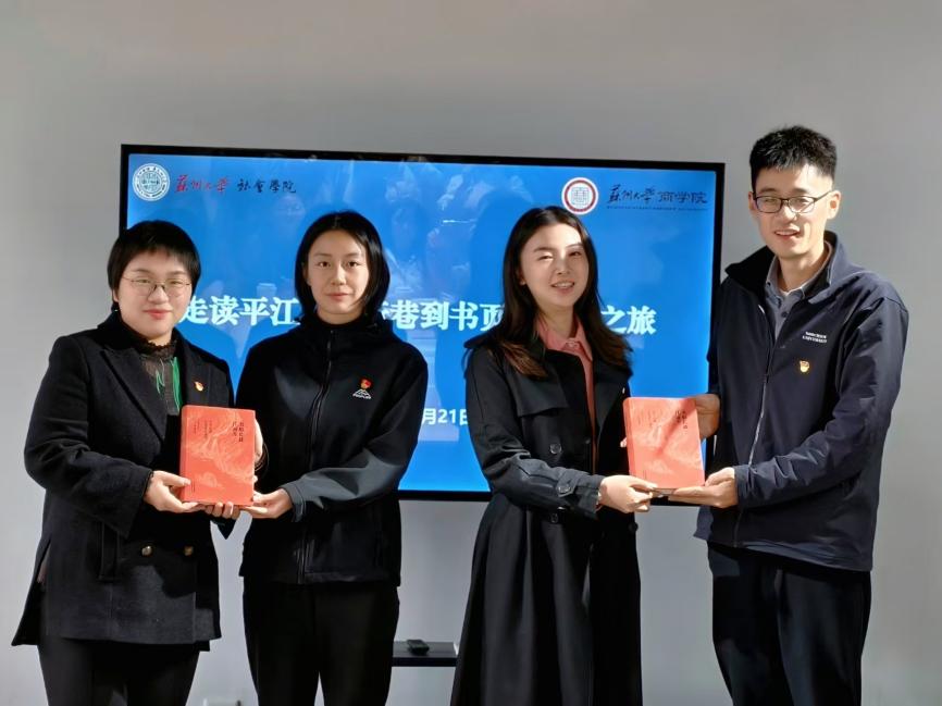 社区的回赠同样情深意重——古籍版本学家、苏州文学山房旧书店第三代传人江澄波先生的口述作品《书船长载江南月》。“江老先生用一生践行‘书业乃文化托命之事’的家训,访书、修书、守护典籍七十余载。”平江街道钮家巷社区党委书记朱书漾介绍,这本书记录了老先生与书籍为伴的传奇人生,也承载着苏州书业的百年记忆。当师生们接过这本沉甸甸的著作,接过的不仅是一册文献,更是一份跨越时空的文化传承使命。现代高校的青春活力与传统书坊的深厚底蕴,在这一刻紧紧握手。