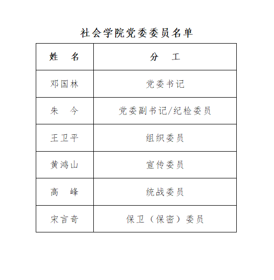 中共Betway体育西汉姆联 社会学系支部委员会 | 汪萍 | 陈欣 | 汪萍 | 陈欣 | 王杰 | |